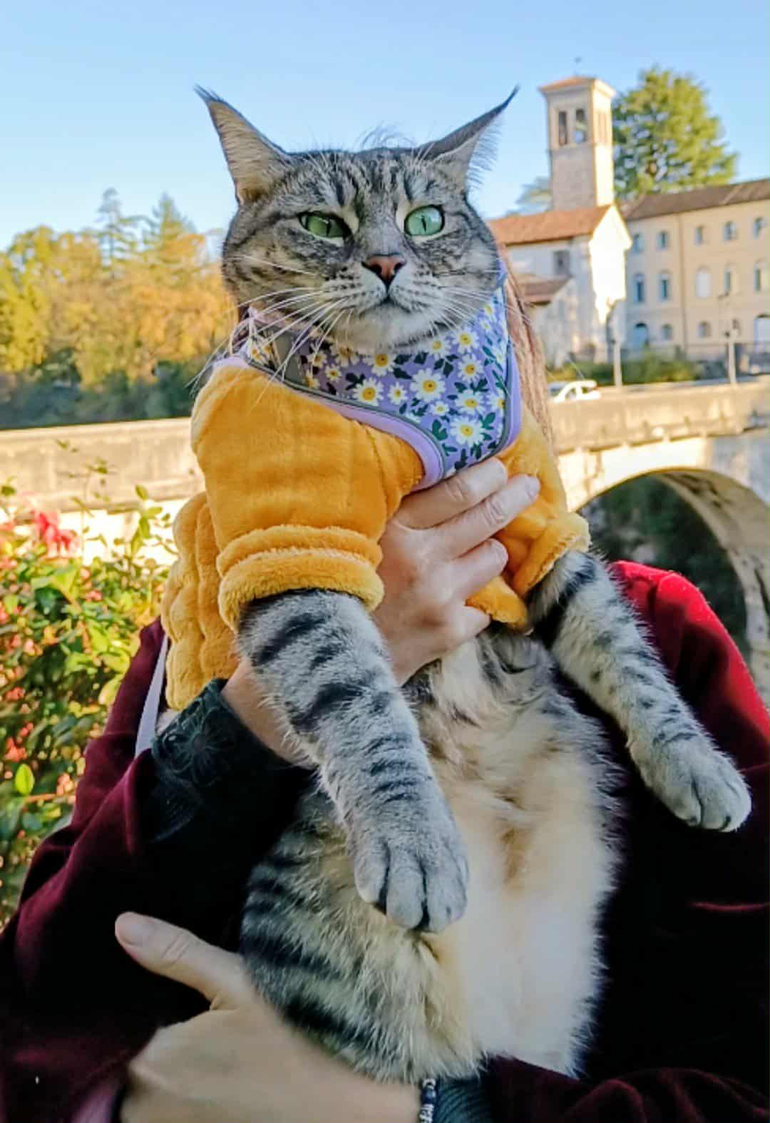 This cultural crossroads overflows with historical treasures, natural wonders, and gastronomic delights. Gigia’s wanderlust carried her from ancient Roman amphitheaters to Cerdevol Curnila’s cascading waterfalls, from Trieste’s adrenaline-charged Barcolana regatta to the timeless serenity of Grado’s age-old chapels. Whether critically appraising Udine Cathedral’s murals (undoubtedly judging the artist’s technique), presiding over Caffè degli Specchi’s lively terrace (where she plainly anticipated a throne), or basking in the Adriatic’s golden light, this petite feline demonstrated that even the grandest adventures demand a cat’s refined touch.
