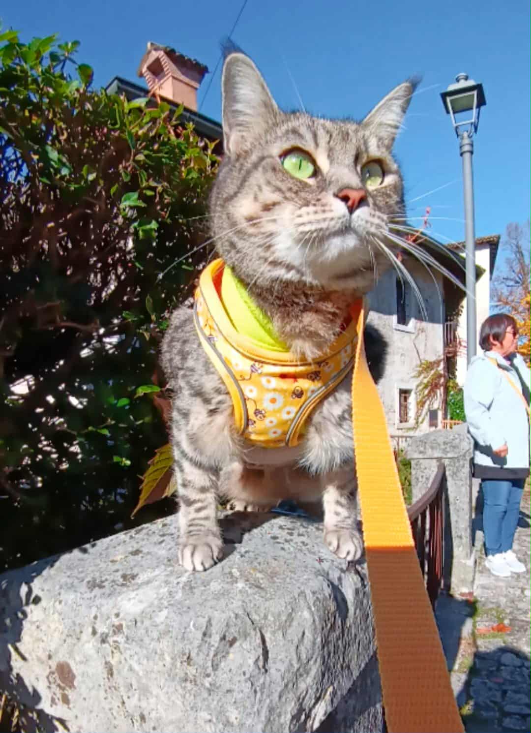 La nostra avventura indimenticabile inizia drammaticamente con un incontro assolutamente fatale: un siamese imponente di bell'aspetto e di corporatura decisamente notevole, che trasudava naturalmente un'aria minacciosa da "padrino" indiscusso del quartiere storico. Con la scaltrezza raffinata di un agente segreto in missione delicata, lo abbiamo abilmente corrotto con degli snack prelibati, comprando strategicamente la sua indifferenza temporanea ma preziosa. Approfittando sapientemente della tregua diplomatica, abbiamo condotto cautamente Gigia nel giardino verdeggiante e incantato dell'Abbazia secolare. Lei, naturalmente regina per diritto divino, ha immediatamente dichiarato con autorità quel prato perfettamente curato e manicurato suo dominio personale e incontestabile, esaminando metodicamente ogni singolo filo d'erba con la concentrazione assoluta di un giardiniere reale dalle competenze botaniche e rifiutandosi categoricamente di andarsene dal paradiso terrestre.